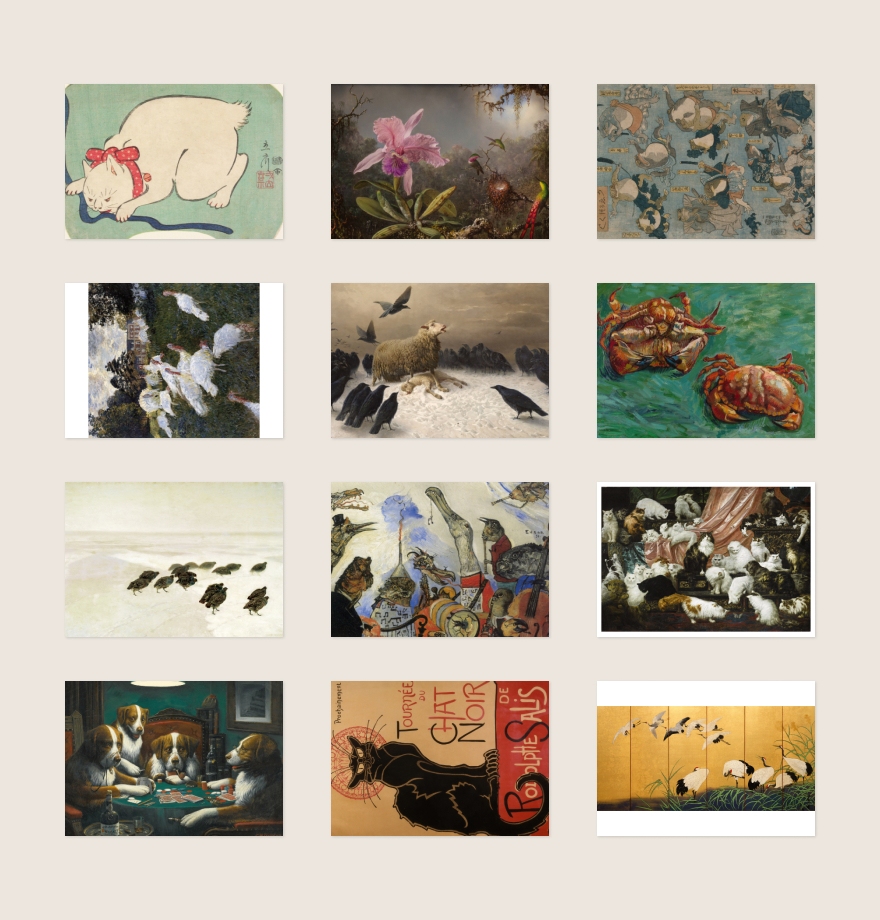 Animals have been a source of inspiration for artists from the beginning of human history. From Neolithic times to modern designs, the spectrum of objects, cultures, and artists on display demonstrates the enduring popularity of animals in art. From art about rural life and growth to myths and legends, animals are used in art in many different ways. In this 50-postcard set, you will see the variety and beauty of wild and domestic animals, created in various cultures and times. In the set, you will see the masterpieces created by ancient Egyptians, Albrecht Dürer, Leonardo da Vinci, Giovanna Garzoni, George Stubbs, Utagawa Kuniyoshi, Franz Marc, Louis Wain, and many more. Everything is printed on high-quality paper and packed in a cardboard box.