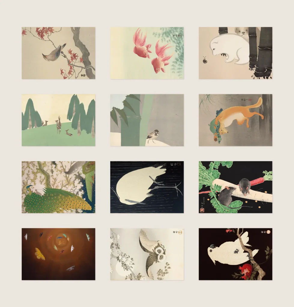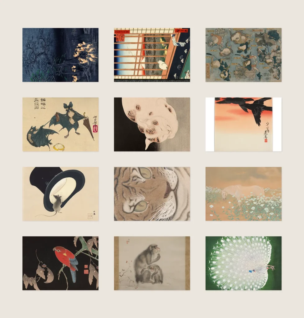 Perfect for sending, collecting, decorating a wall, or keeping as a small archive of Japanese art. A simple, striking set for anyone drawn to animals, nature, and the elegance of Japanese painting and printmaking.