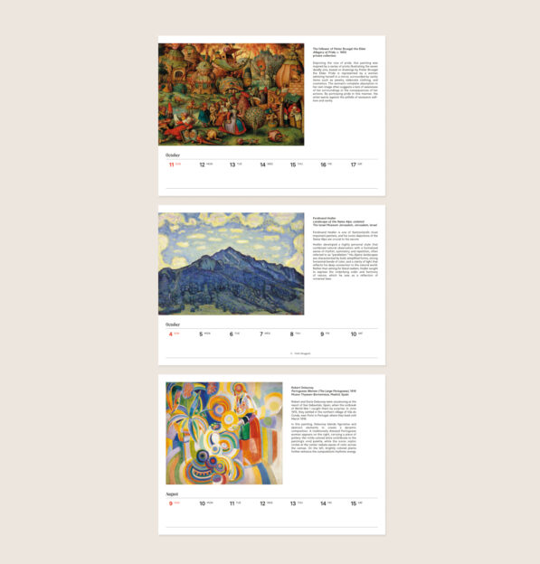 The Essential Weekly DailyArt Desk Calendar 2026 is the perfect desk accessory to help you stay organized and enjoy your eyes with beauty in 2026! With daily boxes to note down those important meetings, birthdays, and events, you are sure to stay on top of your busy schedule. It's perfect for all art lovers who are looking for a simple and spacious calendar. Filled with classic paintings from all epochs and parts of the world, it will fulfill all your art aficionados' needs. Each weekly painting is accompanied by a short story about it and a spacious grid with famous artists' birthdays and special events (International Cat Day, for example), which will help you stay on track throughout the year.
