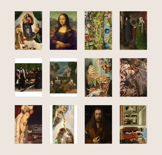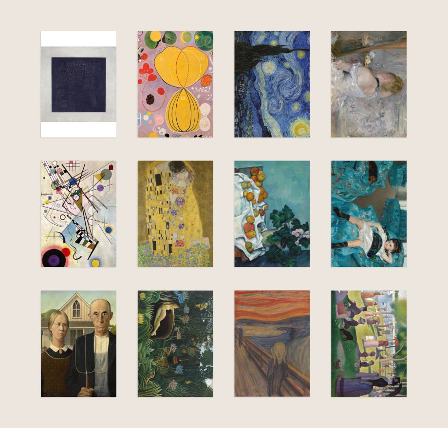 Classics will be classics. This selection of 50 postcards features the most famous paintings in Western Art History. From the Early Northern Renaissance art to the 20th century - you probably know all of them or most of them by heart. But who doesn't love them? They are amazing! You will find there the names of the giants: like Jan van Eyck, Leonardo da Vinci, Michelangelo, Johannes Vermeer, Claude Monet, Edvard Munch, Edward Hopper, and others. Everything is printed on high-quality paper and packed in a cardboard box. You won't feel disappointed. With this postcard set, you will feel like meeting old friends.
