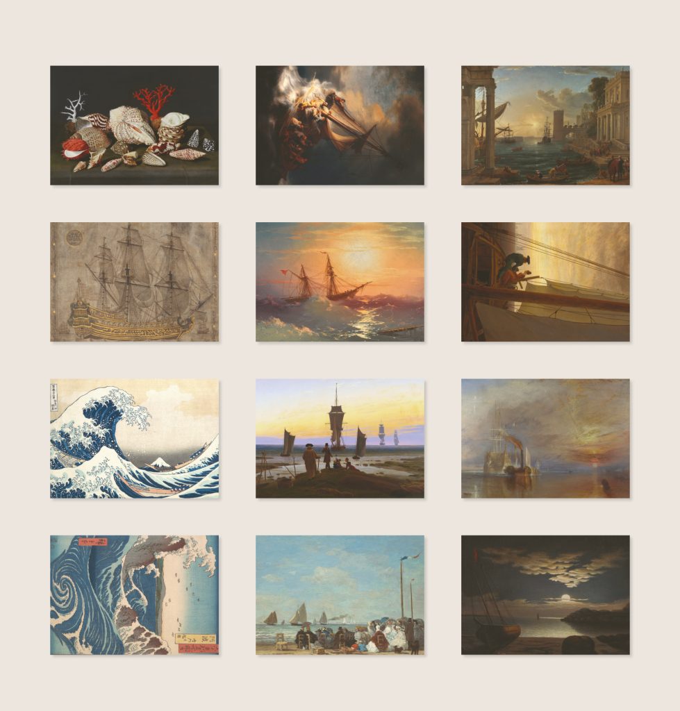 Introducing our "Sea, Ships, and Beaches - 50 Postcards Set" – a captivating collection of 50 postcards showcasing the timeless allure of the sea, ships, and picturesque beaches through the lens of art history's greatest masterpieces. This exquisite set offers a delightful journey through time, allowing you to enjoy and share iconic maritime and coastal scenes from renowned artists.