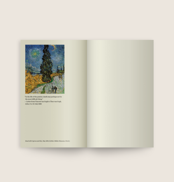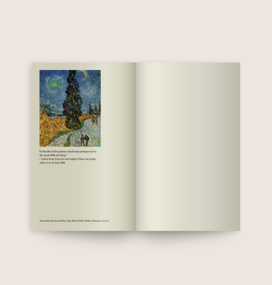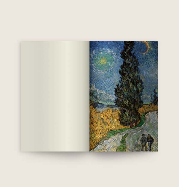 Follow the life and amazing works of Vincent van Gogh with our Van Gogh Notebook. Get inspired by 11 reproductions of the most iconic van Gogh's paintings - and some others, a bit lesser-known. In addition, learn more about the artist and his turmoiled life, his visions of reality, and sources of inspiration through the quotes from his famous letters.