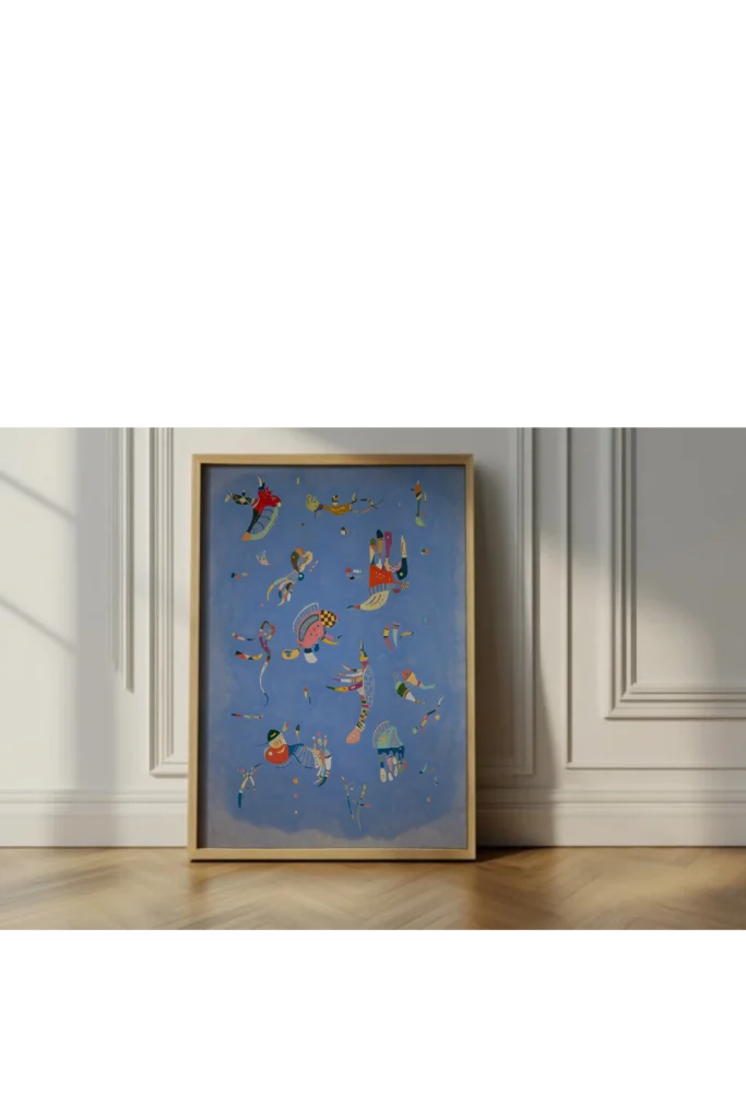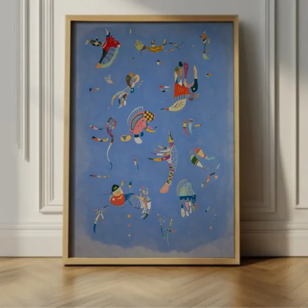 Painted in 1940, Sky Blue by Wassily Kandinsky captures a world untethered from gravity, where imagination drifts freely across an open, luminous space. Known for his belief that color and form could speak directly to the soul, Kandinsky creates a composition that feels both joyful and otherworldly.